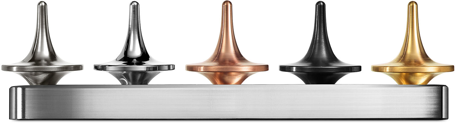 Our 10-top and 2-dock MetalMuseum collection is world-famous! Get all the contents of the Mini MetalMuseum + plus 5 additional tops: Magnesium, Brass, CarbonChromium, Cast Iron, Nickel and a 24kt Gold Plated ForeverDock!
